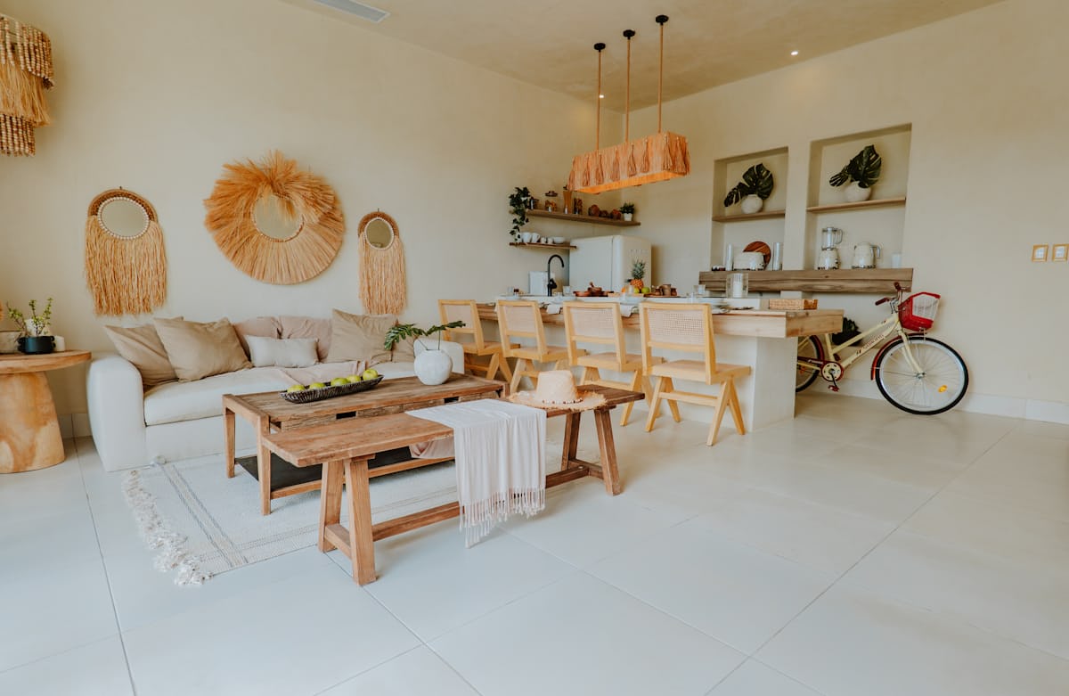 Акцентните цветове добавят интерес и индивидуалност. Използвайте ги в малки дози върху елементи като възглавници, произведения на изкуството или декоративни предмети, за да привлечете вниманието.